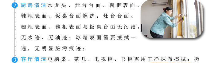 廣州市的鐘點工清潔阿姨具有各種工作項目,包括家庭清潔、企業清潔和物業清潔。家庭清潔包括廚房、浴室和客廳等房間的清潔。企業清潔包括辦公桌、工作區和廁所的清潔。物業清潔包括公共區域、電梯和樓道的清潔。鐘點工清潔阿姨在提供服務時,需要根據客戶的需求提供具體的服務項目。